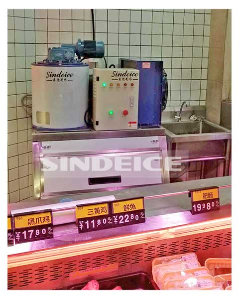 三、我們常見超市賣的海鮮,下面都會鋪一層冰片或打成冰墻,這樣海鮮既新鮮又口感好。一般會選用日產300-3000公斤片冰機。