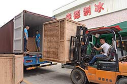 今天同事們頂著烈日裝柜,3輛叉車協同裝柜,經過近3個小時工作,把大型冰磚機安全裝入貨柜,準時發車出口非洲。日產15噸直冷式冰磚機出口塞內加爾,填補了我司大型冰磚機出口非洲的空白歷史。經過公司不斷努力,終于開拓了非洲部分市場,許多非洲國家正大力發展制造業,生活水平逐步提高,對制冰機的需求不斷增長,公司上半年出口非洲制冰機,日產冰總噸位達到120噸。