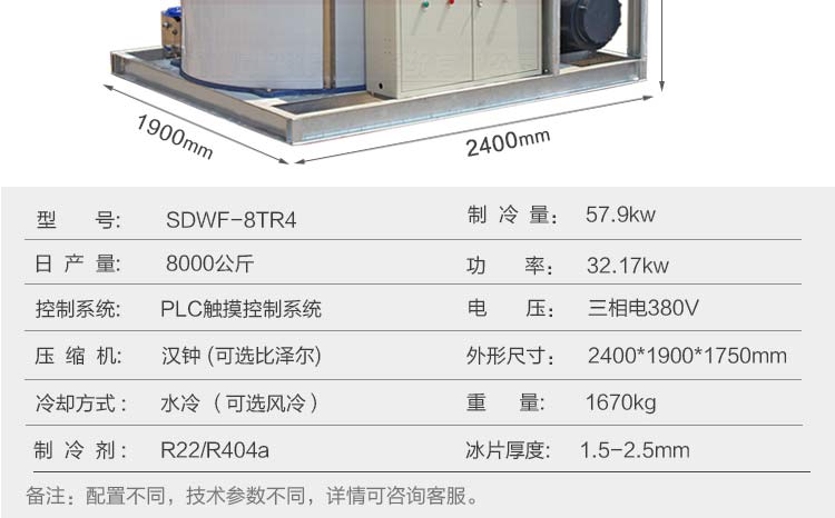 6.公司擁有多年設計生產經驗,接受不同制冰設備的非標定制,客戶可以對制冰設備材質、制冷配件、冷凝方式選擇適合自己的制冰設備。