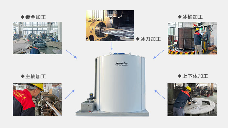 1.片冰機(jī)蒸發(fā)器,根據(jù)客戶的制冰環(huán)境和產(chǎn)冰需求,可以通過不同材質(zhì)的蒸發(fā)器實(shí)現(xiàn)。